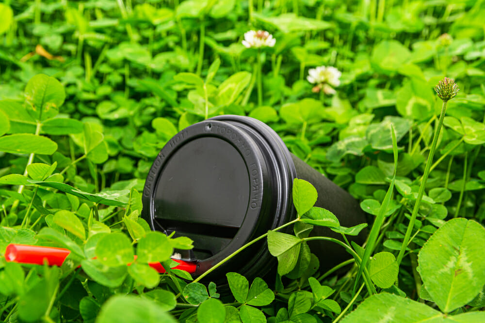 A,Black,Paper,Coffee,Cup,With,A,Red,Straw,Is