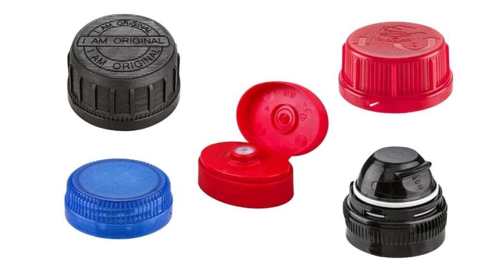 Die „Lightweight“-Range spart Material, PCR-Kunststoffe tragen zur Kreislaufwirtschaft bei. Neu im Angebot: Tethered Caps für Kanister und Container, die – analog zu den Getränkeflaschen – Recyclingprozesse vereinfachen.