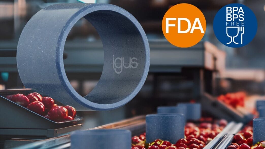 Der neue Gleitlagerwerkstoff iglidur A351 wurde speziell für den Einsatz in der Lebensmittelindustrie entwickelt. Dieser schmierfreie Hochleistungskunststoff ist BPA-frei und ermöglicht es Konstrukteuren, ohne technische Einbußen oder zusätzliche Anpassungen auf die neuen Anforderungen der EU-Verordnung zu reagieren. „Konstrukteure können mit iglidur A351 auch in Zukunft normgerecht arbeiten. Denn das Material ist nicht nur FDA-konform, sondern auch frei von Bisphenol-A und Bisphenol-S“, erklärt Lars Butenschön, Leiter des Geschäftsbereichs iglidur Gleitlager bei Igus.