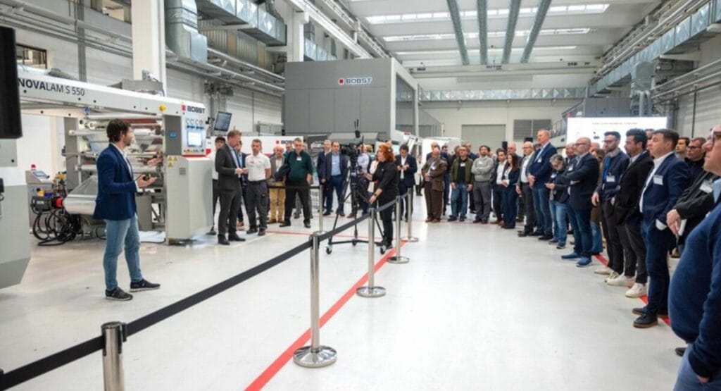 Mit einem Open House in seinem Competence Center in San Giorgio (Italien) präsentierte Bobst gemeinsam mit Industriepartnern eigenen Angaben zufolge neue Maßstäbe für die Herstellung flexibler Verpackungen. Im Fokus standen die digitale Tiefdrucklösung smartGRAVURE sowie die lösemittelfreie Kaschiermaschine NOVALAM S 550. Das zweitägige Event am 8. und 9. April bot Besucherinnen und Besuchern aus der Branche Maschinenvorführungen, Fachvorträge und intensives Networking mit Technologiepartnern wie AVT, Sun Chemical, UPM Speciality Papers, Synaptik und Co-ëfficiënt.