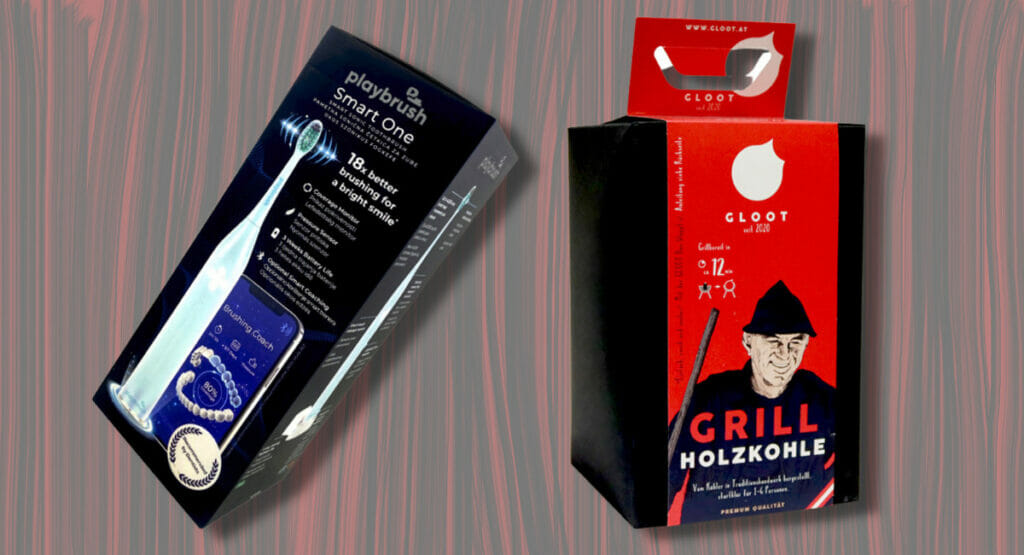Den Preis der Jury gewann „Gloot“, ein System zum Anheizen von Grillkohle. Dieser leichte und saubere Weg zum Grillgenuss stammt von Markeninhaber Thomas Schiefer, der den Award auch persönlich entgegennahm – gemeinsam mit Rene Buchart von Cardbox Packaging. Der Karton stammt von BillerudKorsnäs.