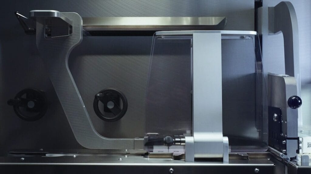 Das Unternehmen aus Ottobeuren hat ein Patent für eine neuartige Siegeleinheit erhalten, die gezielt für die Anforderungen der Pharma- und Medizintechnik entwickelt wurde. Anders als herkömmliche Maschinen, die von unten versiegeln, erfolgt das Siegeln bei der FilmTeq 250 von oben. Laut Hersteller bleibt der Siegeltisch dadurch unbeheizt, was die Aufwärmung des Produkts vermeide und den Kühlaufwand verringere.