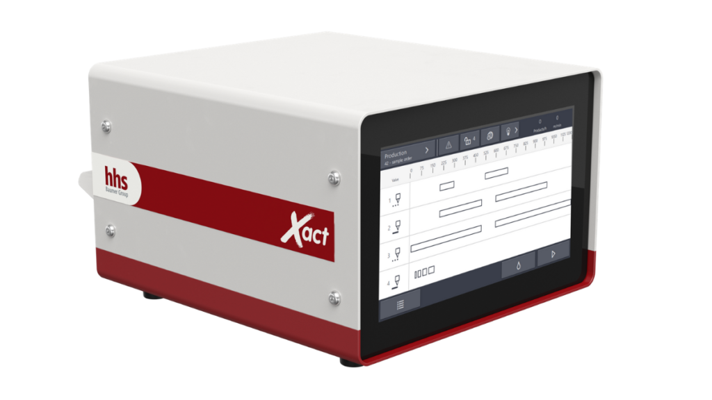 Mit Xact bringt Baumer hhs ein kompaktes und intuitiv bedienbares Steuergerät auf den Markt, dessen Funktionalität ganz auf die Steuerung des maschinellen Klebstoffauftrags zugeschnitten ist. Dabei bietet das auf neuester Soft- und Hardware-Technik basierende Steuergerät Kunden größtmögliche Flexibilität. Über Xact können sie alle Heiß- und Kaltleim-Auftragsventile von Baumer hhs betreiben und sowohl einfache als auch komplexe Klebstoffanwendungen wirtschaftlich realisieren. Kurze Rüstzeiten und eine hohe Zuverlässigkeit machen das neue Steuergerät zu einer idealen Lösung für den hochpräzisen Klebstoffauftrag unter anderem in vielen Bereichen der Faltschachtelherstellung, Endverpackung und Druckweiterverarbeitung. Nicht überall ist es hier notwendig, die Qualität des maschinellen Klebstoffauftrags zu überwachen. Deshalb umfasst das Portfolio von Baumer hhs traditionell auch Steuergeräte für Klebstoffanwendungen, bei denen auf die Kontrolle der Qualität des Klebstoffauftrags verzichtet wird. Xact repräsentiert die neueste Generation der Steuergeräte dieser Leistungsklasse