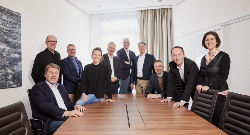 Auf dem Foto (v.l.n.r): Rainer Wilke Kasanický, Jan Scharfenberg, Christian Huth, Dr. Julia Eberhardt, Hermann Koch, Dr. Holger Kreilkamp, Dr. Uwe Stebani, Dieter Janout , Dr. Stefan Busse, Nicola Kopp-Rostek (Bild: DFTA Flexodruck Fachverband e.V.)