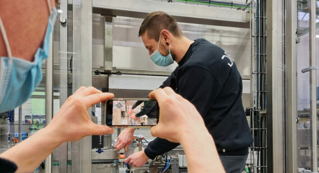 Durch die moderne Industriesteuerung können die Techniker von Dienst online auf die Maschine zugreifen. So können die Software einfach angepasst, Fehler gefunden und beseitigt werden. Die Kommunikation läuft per Videochat – mithilfe von professionellen Kameras wird die Maschine in Aktion gezeigt. Einzelne Stationen und Schritte können fokussiert und offene Fragen auf direktem Wege besprochen werden. Auch spontane Detailaufnahmen in jedem Winkel der Maschine stellen kein Problem dar, mit zusätzlichen Smartphone-Kameras ist viel Flexibilität in der Durchführung gegeben.