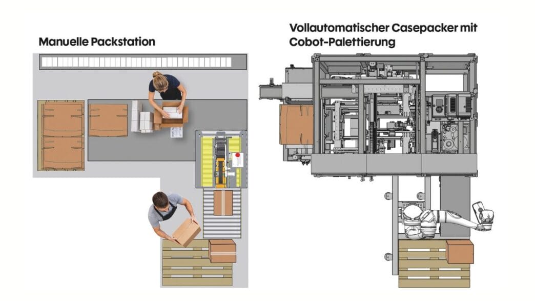 In Zeiten steigender Anforderungen an Effizienz und Kostensenkung in der Verpackungsproduktion hat Mohrbach eine Lösung entwickelt, die genau diesen Bedürfnissen gerecht wird. Die Kombination aus Casepacker und Yaskawa Cobot-Palettierung ist so konzipiert, dass sie maximale Leistung auf minimalem Raum bietet.