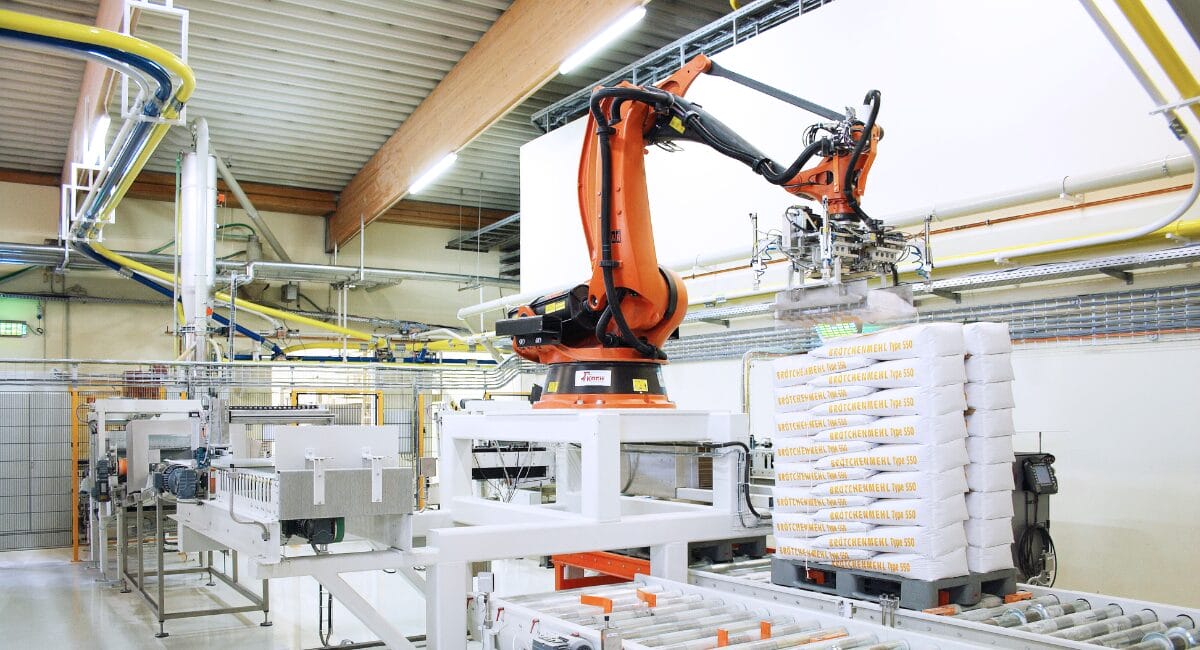 Saalemühle Alsleben: Robot palletising and load securing for two bagging lines and one big bag filling line