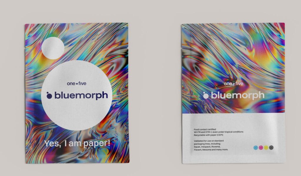 „Our aim was to develop a paper-based solution that would also work where there were previously hardly any alternatives to composite materials,“ says Martin Weber, co-founder and Managing Director of One.five. „The fact that Bluemorph is now being used as packaging material for vegan cheese on the food retail shelves at Rewe Nord shows that our high-barrier paper fulfils the practical requirements of retailers and manufacturers.“