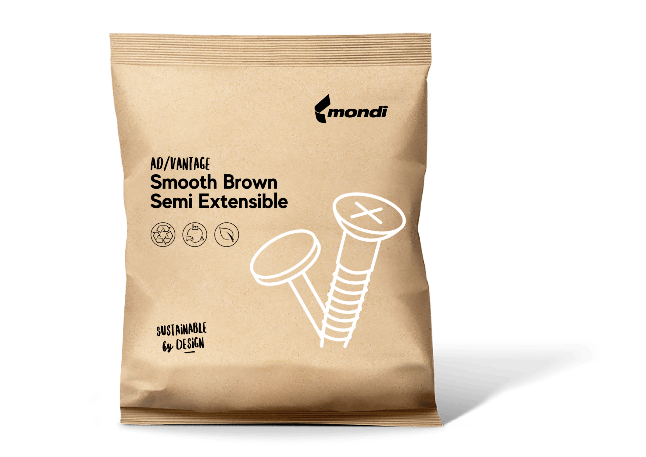 Das Ad/vantage Smooth Brown Semi Extensible ist ein innovatives Kraftpapier, das die Lücke zwischen hochfestem Sackpapier und glattem, brillant bedruckbarem Papier schließt. Ausgezeichnet wurde es für diese einzigartige Kombination aus hoher Reißfestigkeit und exzellenter Bedruckbarkeit. Das macht es zu einem idealen Basismaterial für anspruchsvolle Verpackungen für schwere oder scharfkantige Produkte, ohne Kompromisse bei der Druckqualität eingehen zu müssen.