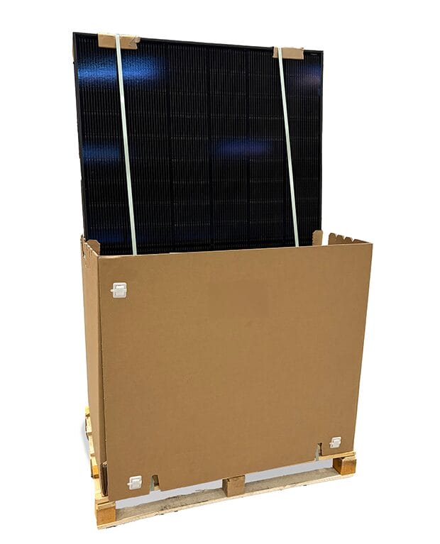 Die Solar Module Packaging ist eine innovative Verpackungslösung aus Schwerwellpappe, die speziell für den sicheren Transport von empfindlichen Solarmodulen entwickelt wurde. Sie ersetzt herkömmliche Holzverpackungen und reduziert das Gewicht sowie die CO2-Emissionen erheblich. Ausgezeichnet wurde sie für ihr cleveres Design, das die Module ohne den Einsatz von Kunststoff fixiert und schützt. Die Verpackung ist zu 100 % recycelbar und optimiert den gesamten Logistikprozess.