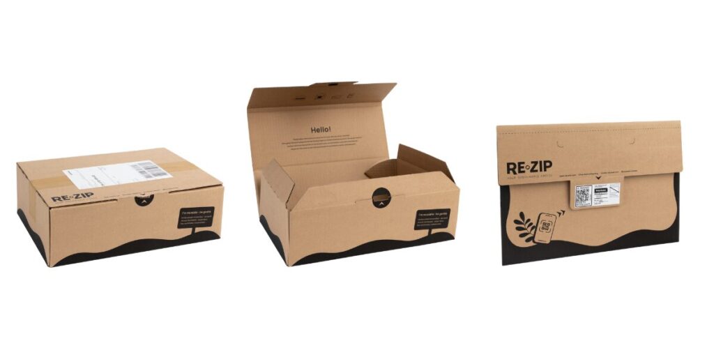 Die neuen Mehrwegversandverpackungen RE-ZIP aus Kartons und Papier können klein zusammengefaltet über jeden Briefkasten und jede Filiale der Deutschen Post retourniert werden. Das Unternehmen „reinigt“ die Verpackungen und bringt sie danach wieder in den Versand. Damit bedient die Verpackung sowohl das Ziel der Kreislaufwirtschaft als auch die sich abzeichnenden Anforderungen der neuen Verpackungsverordnung.