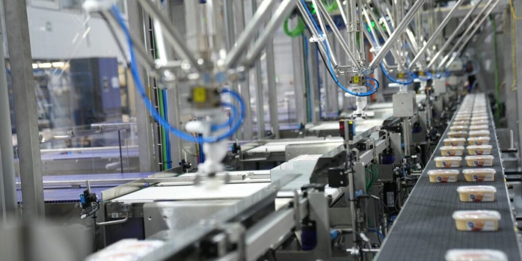 Betreiber von Verpackungsanlagen fordern häufig maximale Flexibilität und Wirtschaftlichkeit. Die in aller Regel hochgradig automatisierten Maschinen verlangen daher nach ausgereiften Sicherheitskonzepten. Diese sollen das Personal wirkungsvoll vor Verletzungsgefahren schützen. Sie dürfen aber weder die Bedienbarkeit noch die Produktivität einschränken. Die 1974 gegründete A+F mit Sitz in Kirchlengern entwickelt und produziert hochwertige Verpackungsmaschinen. Seit 2017 ist die A+F ein Teil der internationalen Firmengruppe EOL Packaging Experts GmbH, die Endverpackungsmaschinen und Systeme anbietet. Über den eigentlichen Maschinenbau hinaus steht die gesamte Gruppe für die Montage und Inbetriebnahme automatisierter End-of-Line-Lösungen in der Verpackungsbranche.Umverpackungsanlage von A+F: Über sechs seitliche Rollenbahnen werden Kartons mit sortenreinen Feinkostsalatbechern zugeführt. In der Anlage werden die gemischt sortierten Kartons anschließend umverpackt. (Bild: A + F, Pilz GmbH Co. & KG) Das Unternehmen bietet ein umfassendes Portfolio an Maschinen und Anlagen für ein breites Feld an Verpackungsanwendungen. Das Portfolio umfasst neben Standardmaschinen kundenspezifisch zugeschnittene Anlagen inklusive innovativer Handhabungslösungen.