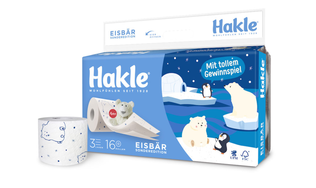 Hakle, Deutschlands Experte in Sachen Hygienepapiere, kurbelt das Wintergeschäft im Handel mit einer ganz besonderen limitierten Edition seines dreilagigen Toilettenpapiers an. In Zusammenarbeit mit dem deutschen Traditionsunternehmen sigikid entstand die Idee zu einer exklusiven Winteredition, die einen kleinen Eisbär in den Mittelpunkt rückt. Die niedliche Darstellung des Stoffeisbären in seiner Polarheimat und ein Bärchendekor auf dem Papier sorgen nicht nur am Point of Sale, sondern auch in den Badezimmern der Verbraucher für winterliches Ambiente mit Kuschelfaktor. Ein attraktives Gewinnspiel auf der Umverpackung verstärkt die Aufmerksamkeit. Hier bietet sich für Endverbraucher die Möglichkeit, einen individuellen Code unter http://www.hakle.de/eisbaer einzugeben und einen der 500 sigikid Eisbären im Wert von je 21,99 Euro zu gewinnen.