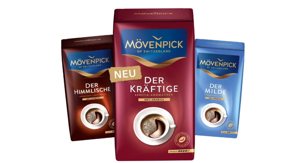 Mövenpick kündigt eine kräftige Erweiterung im Kaffee-Regal an. „Der Kräftige“ soll mit auffälligem Packungsdesign Kaufimpulse auslösen.