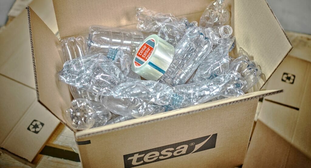 tesa entwickelt ein neues Verpackungsklebeband mit Trägermaterial aus recyceltemPost-Consumer-PET. Das Tape ist ideal für leichte sowie mittelschwere Verpackungen bis zu 30 kg.