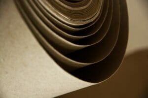 Kraft,Paper,Roll.,Curled,Beige,Material,Close,Up.,Cardboard,Production