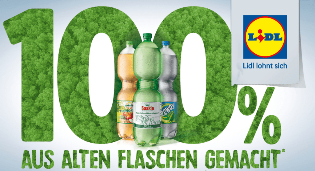Seit Juni 2021 bestehen alle von der Schwarz Produktion hergestellten PET-Einwegpfandflaschen der Lidl- und Kaufland-Eigenmarken in Deutschland zu 100 Prozent aus recyceltem Plastik (rPET), ausgenommen Deckel und Etikett. Lidl bietet rund 60 Getränkesorten in PET-Einwegflaschen an, die zu 100 Prozent aus Rezyklat bestehen. Lidl-Kunden können die Flaschen am "verantwortlicher verpackt"-Logo erkennen. Auch in der Marketingkampagne setzt Lidl mit Postern aus Recyclingmaterial auf Nachhaltigkeit. Bei der Handelssparte Kaufland bestehen rund 50 Getränkesorten der Eigenmarke K-Classic zu 100 Prozent aus rPET. Diese Flaschen sind durch das "bewusster verpackt"-Logo gekennzeichnet. Mit der Erhöhung auf 100 Prozent rPET bei den PET-Einwegflaschen spart die Schwarz Gruppe nach eigenen Angaben 2021 - im Vergleich zu PET-Flaschen ohne Rezyklat - insgesamt 48.000 Tonnen Neuplastik und 79.000 Tonnen CO2 ein.