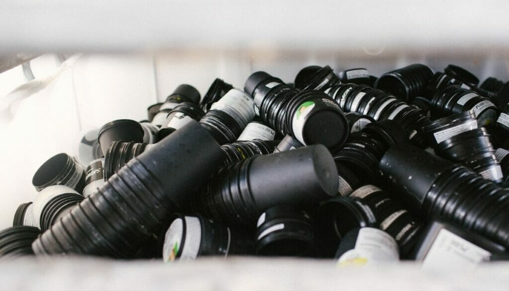 Bei Lush besteht der Großteil der verwendeten Kunststoffverpackungen aus recyceltem und wiederverwendbarem Plastik. Aufgrund seiner Langlebigkeit und der verhältnismäßig einfachen Reinigung ist es für die Produkte des Kosmetikunternehmens gut geeignet.