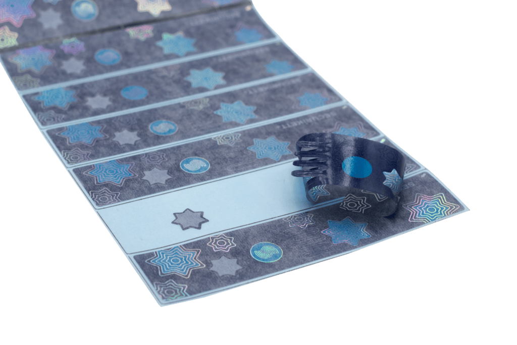 Ein Beispiel für die neuen Designmöglichkeiten ist die Möglichkeit, bestimmte Formen, wie etwa Sterne, aus dem Etikett herauszustanzen, die dann auf dem Trägermaterial zurückbleiben. Diese Funktionalität eröffnet nicht nur kreative Gestaltungsmöglichkeiten, sondern verstärkt auch den Fälschungsschutz.