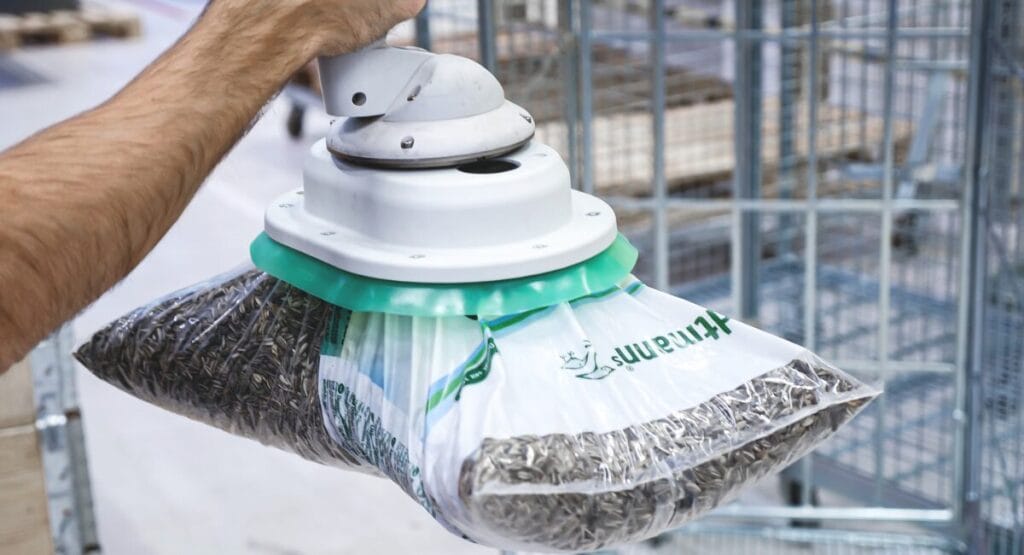 Für das ergonomische Handhaben schwerer Lasten bietet Schmalz einen neuen Greifer für Vakuum-Schlauchheber. Der Sacksauggreifer PSSG zeichnet sich durch lange Standzeiten und große Wartungsintervalle aus. Der Vakuum-Schlauchheber Jumbo sorgt in Unternehmen für ein ergonomisches Handling schwerer Lasten. Ob Holz- und Glasplatten, Pappkartons, Metallbauteile oder Säcke – vielfältige Waren lassen sich damit schnell und mühelos bewegen. Schmalz hat den neuen Sacksauggreifer PSSG zur Montage am Jumbo speziell für die Handhabung von Säcken optimiert. Der PSSG greift beschichtete und unbeschichtete Beutel aus Papier, Kunststoff oder Gewebe mit unterschiedlichem Füllgrad prozesssicher. Er eignet sich auch für Rohgummiballen und eingeschweißte Packstücke. Das innovative Dichtelement aus FDA-konformem Silikon oder verschleißfestem NBR (Acrylnitril-Butadien-Kautschuk) ist robust und hält lange durch. Im Vergleich zu herkömmlichen Schwammgummi-Dichtungen verlängert sich die Standzeit. Unternehmen profitieren dadurch von großen Wartungsintervallen und stabilen Prozessen. Außerdem müssen sie keine Kontaminationen durch zerbröckelnden Schaum befürchten. Auch in puncto Nachhaltigkeit überzeugt die neue Dichtung: Das Unternehmen verzichtet auf Klebstoffe und setzt bei der Verbindung auf einen verschraubbaren Metalleinleger. Damit erledigen die Beschäftigten einen Dichtlippenwechsel in wenigen Minuten. Zudem lassen sich alle Materialien am Ende der Nutzungsdauer sortenrein entsorgen. Der neue Sacksauggreifer packt am JumboFlex, JumboErgo und JumboSprint zu. Durch drei verschiedene Baugrößen und die beiden unterschiedlichen Dichtungsmaterialien passt sich der Greifer an eine große Bandbreite von Anwendungen optimal an. Sein glasfaserverstärktes Kunststoffgehäuse ist sehr leicht, ein Filtervlies schützt das System vor Verschmutzungen. Quelle: Schmalz