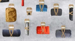 Keim Packaging hat für die Essentials von Vaude eine materialsparende Verpackung entwickelt und dabei die Form der Aufhängungen aus dem Logo von Vaude abgeleitet.