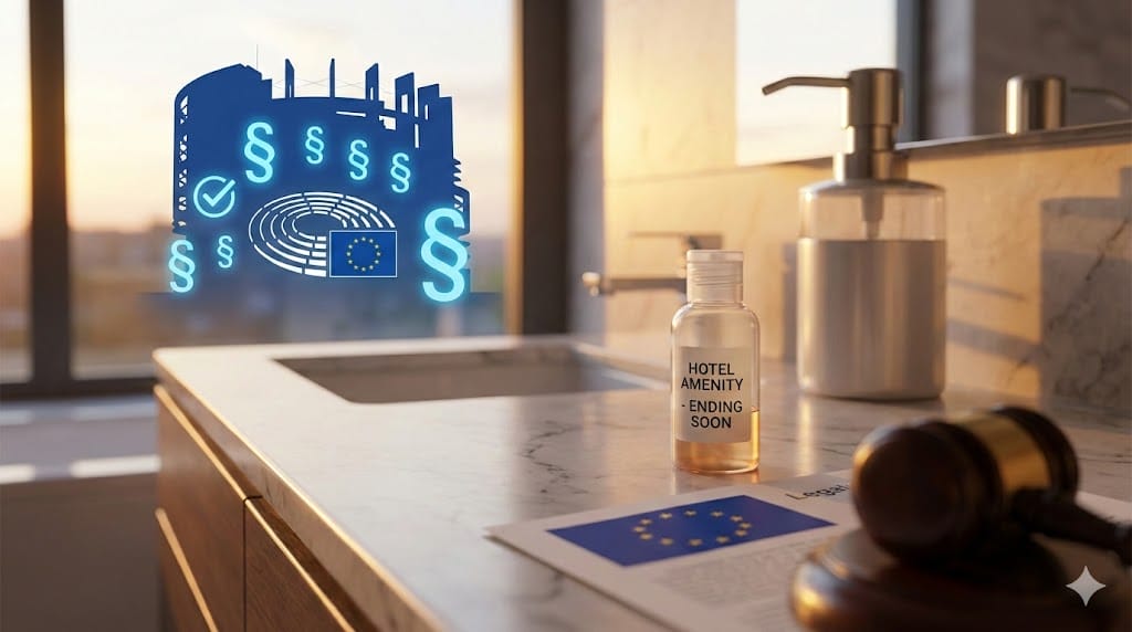 Die EU-Verpackungsverordnung (PPWR) beschäftigt die Branche intensiv. Jetzt erreicht das Thema die Öffentlichkeit – durch das Verbot von Hotel-Minishampoos.