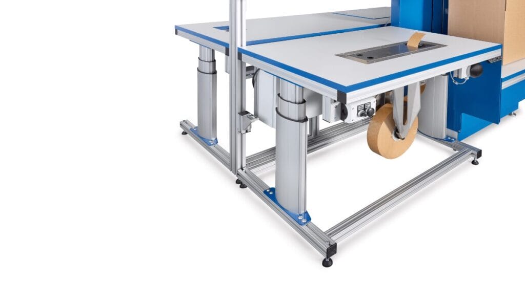 Für Packtische bringt Storopack einen neuen platzsparenden Nassklebebandspender auf den Markt. Der Spender lässt sich einfach in die Tische integrieren und ermöglicht das effiziente Verschließen von Versandkartons. Der neue Nassklebebandspender für Comfort.Pack Stationen wird in die Oberfläche des Packtisches integriert. Versandkartons lassen sich dann schnell und einfach über den Spender führen und so auf ergonomische Weise verschließen. Nassklebeband zeichnet sich durch eine sichere Verklebung, Reißfestigkeit, Staubresistenz und Recycelbarkeit aus. Storopack bietet mit dem im Tisch integrierten Nassklebebandspender eine Lösung für dieses Verschlussmittel an. Im Vergleich zu herkömmlichen Nassklebebandspendern, die auf dem Packtisch platziert werden, spart die Lösung Platz und beschleunigt zugleich den Packprozess. Darüber hinaus ermöglicht sie ergonomischere Abläufe verglichen mit Tischmodellen oder Handgeräten: Um die Bodenlaschen des Kartons per Nassklebeband zu verschließen, muss dieser nicht angehoben, sondern lediglich über die Oberfläche des Spenders geschoben werden.(Bild: Storopack) Anschließend schneidet das Gerät das Klebeband ab und die Laschen lassen sich umklappen. Im Vergleich zu herkömmlichen, auf dem Tisch platzierten Geräten, kommen Mitarbeiter dadurch deutlich weniger in Kontakt mit dem Kleber des Nassklebebands. Flexibilität im Verpackungsprozess ist ebenfalls gewährleistet, denn der Nassklebebandspender für Comfort.Pack Stationen eignet sich für alle Kartongrößen. Alternativ produziert die Maschine auf Knopfdruck auch Klebebandstreifen in der gewünschten Länge – diese lassen sich einfach entnehmen und damit beispielsweise die Kartonoberseite verschließen. Das Unternehmen hat bei der Entwicklung zudem Wert auf eine einfache Handhabung des Gerätes gelegt: Der Spender arbeitet mit größeren, industriellen Nassklebebandrollen mit bis zu 400 Millimetern Außendurchmesser und 60 bis 80 Millimetern Klebebandbreite. Der Wassertank fasst drei Liter. Beides trägt dazu bei, dass sich das Gerät bis zu einem Rollenwechsel oder Nachfüllen länger einsetzen lässt als ein herkömmliches Tischgerät. Der Rollenwechsel ist in ein bis zwei Minuten erledigt. Die Reinigung des Nassklebebandspenders geht dank guter Zugänglichkeit ebenfalls schnell vonstatten und ist werkzeuglos möglich. Quelle: Storopack