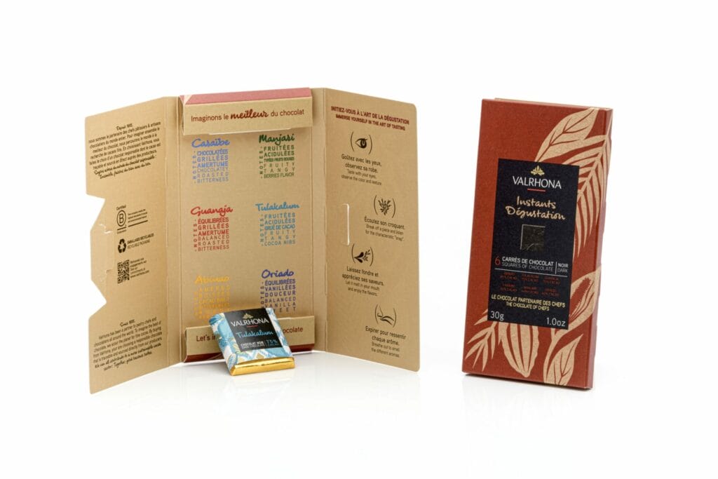 Einer der beiden Gewinner ist die Verpackung der Carrés de Chocolat Noir von Karbest. Hier wurde die Kunststoffmenge erfolgreich reduziert, indem die bisherige Kunststoffschale durch Frischfaserkarton von Metsä Board – genauer die Qualität MetsäBoard Pro FBB Bright – ersetzt wurde.