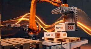 Anschließend werden die befüllten Faltschachteln in die nächste Station der UNIROB-Verpackungslinie befördert. Auch hier werden über einen weiteren Sechs-Achs-Roboter die Wertetabellen in die Faltschachtel gelegt. Hierfür nimmt der Roboter die Wertetabelle mittels Vakuumsaugern aus einem Magazin ab. Vor der Entnahme wird jeweils der Data-Matrix-Code des Beipacks im Magazin geprüft. Nachdem die Faltschachteln mit Heißleim verschlossen wurden, werden sie mit je zwei Etiketten gekennzeichnet. Die gedruckten Etiketten werden jeweils vor dem Aufspenden geprüft und nur bei Freigabe appliziert. Auch bei der Verschlusstechnik geht Siemens Healthineers einen neuen Weg: Wurde bisher ein Über-Eck-Etikett als Originalitätsverschluss verwendet, dient hierzu nun eine effiziente Perforation zur vereinfachten Handhabung des Produkts.