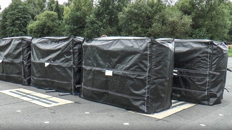 Neben vielfältigen Entleerungsoptionen im industriellen Betrieb hebt der Anbieter alternative Anwendungen hervor: mobiles Löschwasserreservoir bei Vegetationsbränden, Hochwasserschutz im Ziehharmonika-Prinzip, Mehrzweckbehälter für Trinkwasser und Bergungsgüter sowie Ballast-Tank für Gerüst- und Bühnenbau. Ergänzend wird eine DEKRA-zertifizierte Fahrzeugsperre auf Basis des IBC genannt, die im Crash-Test mit Wasserfüllung Aufprallenergie absorbiert und Trümmerflug reduziert.