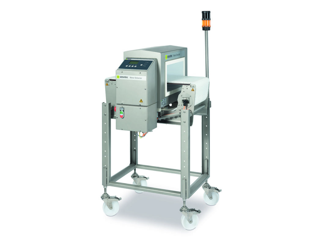 Das Metalldetektionssystem Varicon Compact von Sesotec setzt sich aus einem Tunnelmetalldetektor, einem Förderband und einer Auswerteelektronik zusammen. Bei Metalldetektion erfolgt der Ausscheidevorgang mittels Bandstopp.