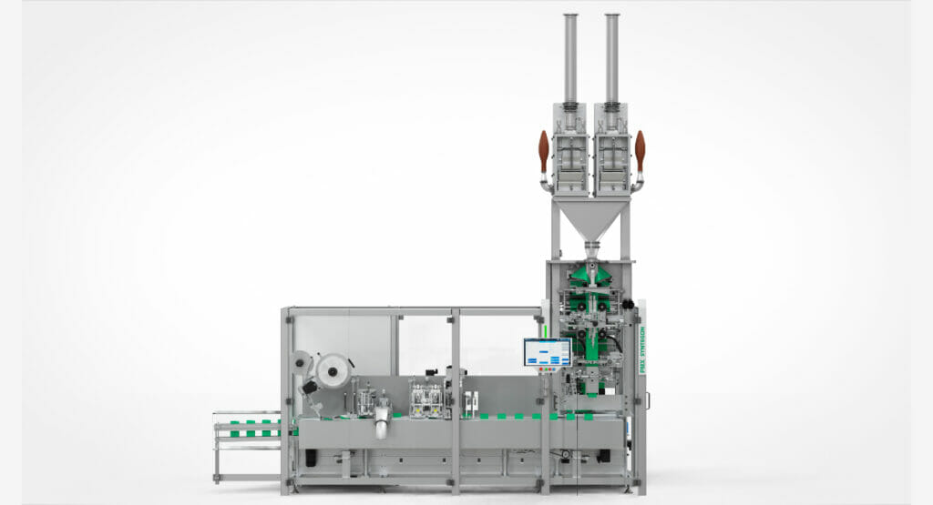 3D-Formatwechsel am Schließteil erfolgen automatisch per Knopfdruck. Wird das Format des Beutelquerschnitts gewechselt, ist die Maschine nach 30 Minuten wieder einsatzbereit. Sie eignet sich deshalb für zahlreiche kleine, mittlere und große Verpackungsformate – dabei können verschiedene Beutelvarianten und Verschlusselemente miteinander kombiniert werden. Die PMX stellt Standbodenbeutel mit Packungsgewichten zwischen 200 und 1200 Gramm her, sowohl mit hochstehendem als auch niedergefaltetem Kopfteil. Wiederverschließbar sind die Beutel mit Tin-Tie, Etiketten oder Klebestreifen. Bei Bedarf können Hersteller einen Spout-Verschluss einsetzen, durch den Kaffeebohnen an der Verpackungsseite ausgeleert. Für Aromaschutz sorgt dabei das „Neutrafill“-Verfahren, bei dem der Kaffee vor und während des Verpackungsprozesses begast wird.