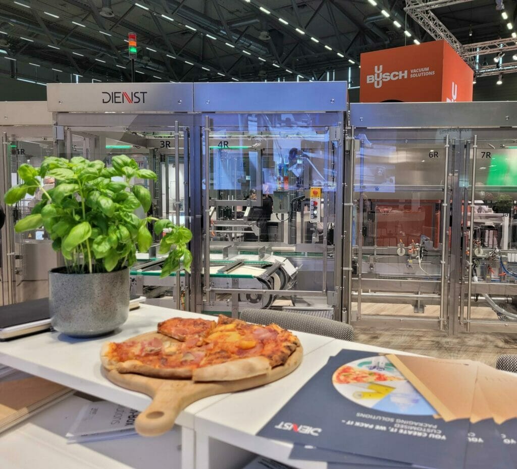 In diesem Jahr präsentiert Verpackungsspezialist Dienst den Standardkartonierer P³ (Performance Power for your Pizza). Bereits auf der Anuga FoodTec in Köln konnten sich die Gäste mit frisch gebackener Pizza von Gustavo Gusto verwöhnen lassen.