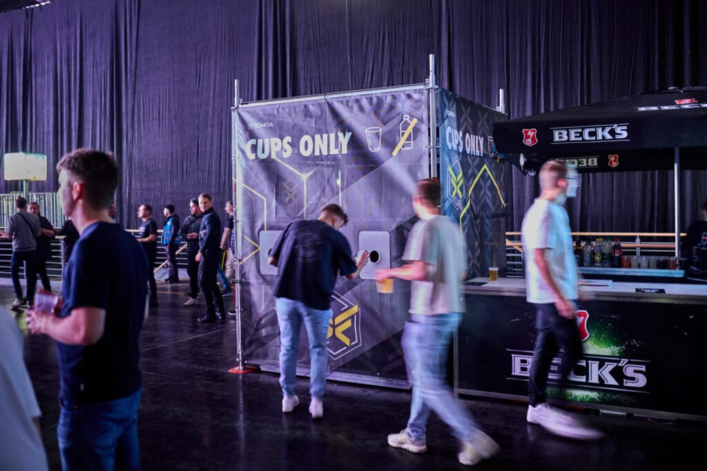 Für die Rückgabe war kein Sortieren oder Anstehen nötig: Die genutzten Becher wurden einfach in die Tomra Rückgabestationen eingeworfen, das Pfand unmittelbar als Guthaben zurück auf die Einlassbändchen zurück transferiert. Das Ergebnis zeigte sich direkt im laufenden Betrieb: saubere Hallen, kürzere Warteschlangen, ein flüssigerer Getränkeservice an den Bars und insgesamt weniger Abfall. Gleichzeitig erhielten die Veranstalter einen zentralen Überblick über Becherumläufe, Pfandprozesse und Rückgaben in Echtzeit und über den gesamten Festivalzeitraum hinweg.