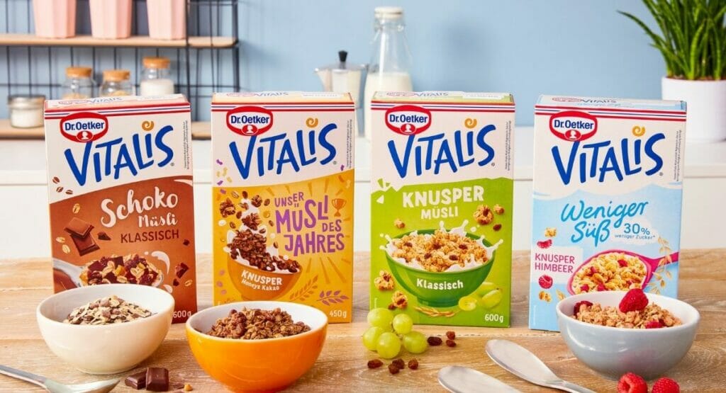 Das Müsli-Sortiment Vitalis von Dr. Oetker gibt es ab diesem Monat in einem neuen Design. Die Verpackungen sollen in einem modernen, farbenfrohen Look erscheinen und für noch mehr Aufmerksamkeit im Müsliregal sorgen. Das modernisierte Vitalis-Logo erscheint nun auf weißem Hintergrund und strahlt Dynamik und Lebensfreude aus. Die verschiedenen Ranges innerhalb des Sortiments werden durch neue, individuelle Designelemente voneinander abgegrenzt. Dabei erhöht eine einheitliche Farbgebung den Wiedererkennungswert bestimmter Geschmacksrichtungen über das gesamte Sortiment. Die Appetizer auf der Vorderseite der Verpackungen sollen direkt beim Betrachten die Lust auf Müsligenuss wecken. Abgerundet wird das neue Design durch Illustrationen auf der Packungsrückseite, mit denen die Produktvorteile jeder Sorte auf einen Blick dargestellt werden. Der Relaunch wird bis Ende des Jahres 2021 abgeschlossen. Quelle: Dr.Oetker