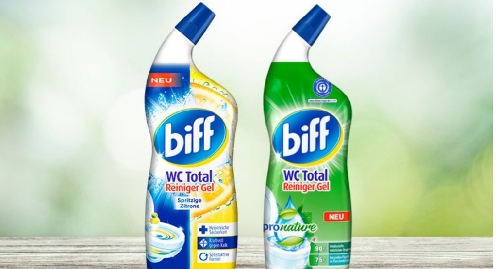 Henkel stellt heute sein neues Verpackungskonzept für WC-Reiniger-Flaschen vor. Der Anteil von recyceltem Polyethylen (PE) konnte demnach signifikant erhöht werden. Das Unternehmen gibt an, den Rezyklateinteil auf 50 Prozent bei den WC Reinigern im Standardsortiment, zum Beispiel von der Marke Biff, erhöht zu haben. Bei den WC-Reinigern aus dem Pro Nature-Sortiment komme man auf 75 Prozent.Dabei handele es sich um recyceltes Plastik aus Endverbraucher-Haushalten.