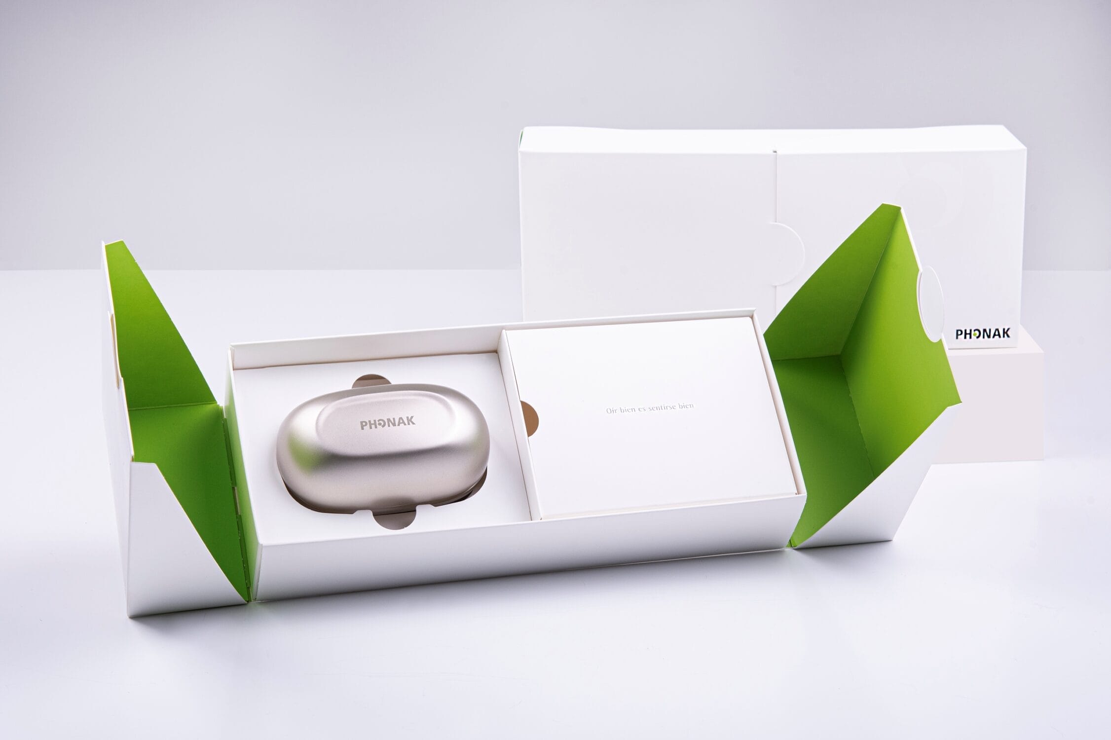 Das Phonak Sustainable Pack ist eine innovative Verpackung für Hörgeräte, die vollständig auf Kunststoff verzichtet und aus recycelbarem Frischfaserkarton besteht. Ausgezeichnet wurde sie für die gelungene Kombination aus Nachhaltigkeit, Funktionalität und Premium-Design: Sie ist nicht nur plastikfrei, sondern wird auch platzsparend flach geliefert, was Transportemissionen reduziert. Zudem lässt sie sich einfach öffnen und kann als praktische Aufbewahrungsbox weiterverwendet werden.
