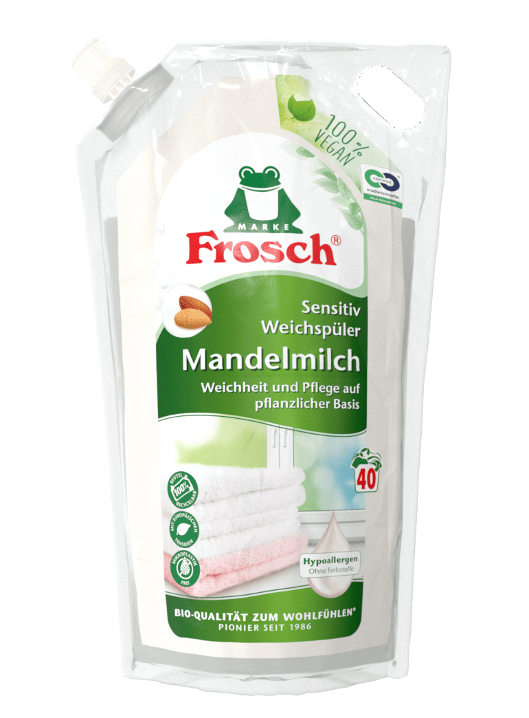 Der prämierte Standbodenbeutel für Frosch Weichspüler ist ein Pionierprojekt für die Kreislaufwirtschaft. Er wurde für den Einsatz von 40 % recyceltem Kunststoff (PCR) ausgezeichnet, der direkt aus der haushaltsnahen Sammlung stammt. Die Innovation liegt darin, hochwertiges Verpackungsmaterial aus Post-Consumer-Abfällen herzustellen, ohne Kompromisse bei Sicherheit oder Design einzugehen. Dies stellt einen wichtigen Schritt dar, um den Materialkreislauf für flexible Verpackungen zu schließen.