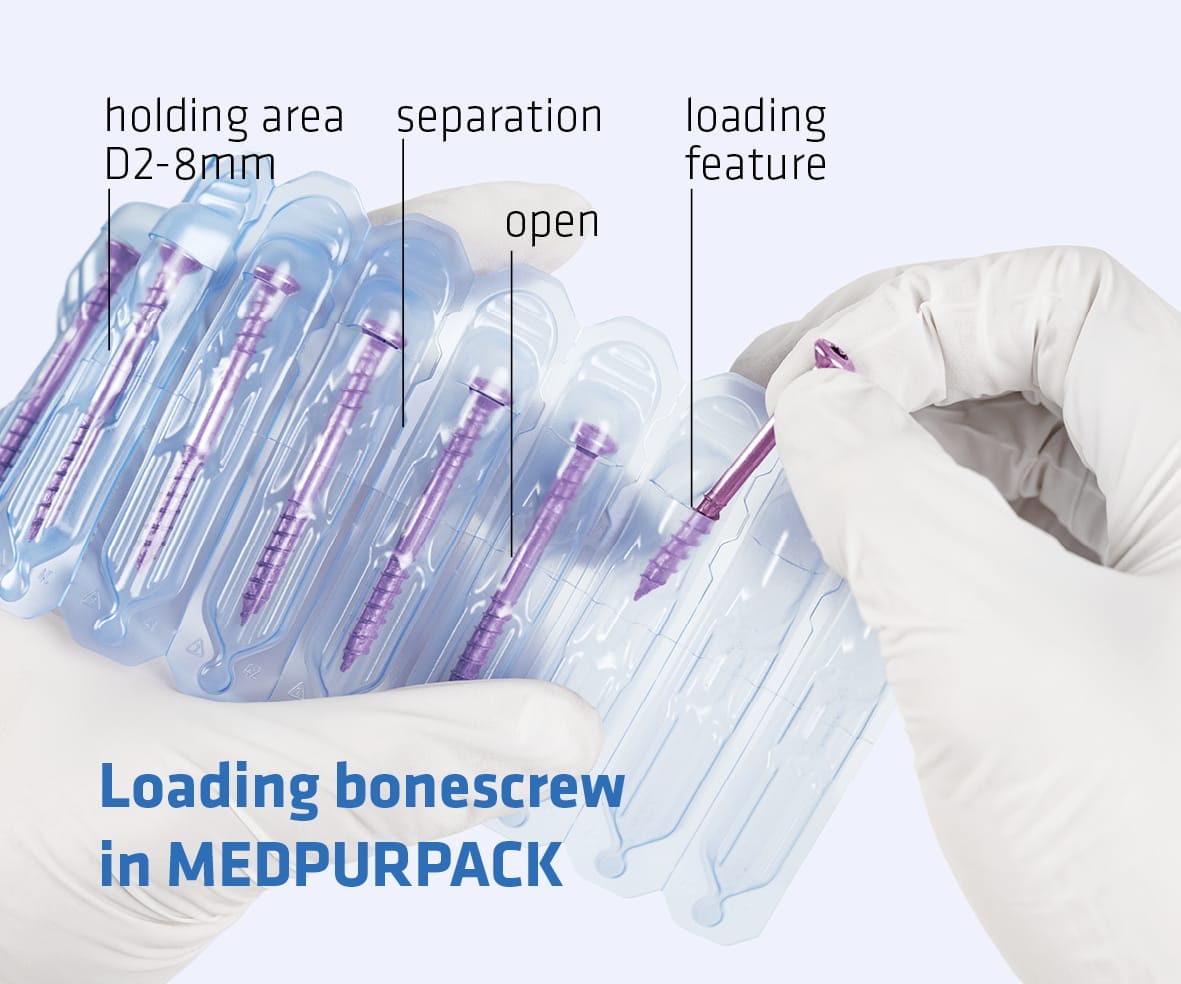 Das MED-Pack eco ist eine hochinnovative Sterilverpackung für medizinische Implantate wie Knochenschrauben, die Nachhaltigkeit und maximale Sicherheit vereint. Ausgezeichnet wurde die Lösung, weil sie aus recycelten Monomaterialien besteht und einen um 52 % geringeren CO2-Fußabdruck als herkömmliche Verpackungen aufweist. Ein patentiertes, flexibles Inlay schützt selbst scharfkantige Produkte optimal, während das „No-Touch“-Design eine sichere und hygienische Entnahme im OP ermöglicht.